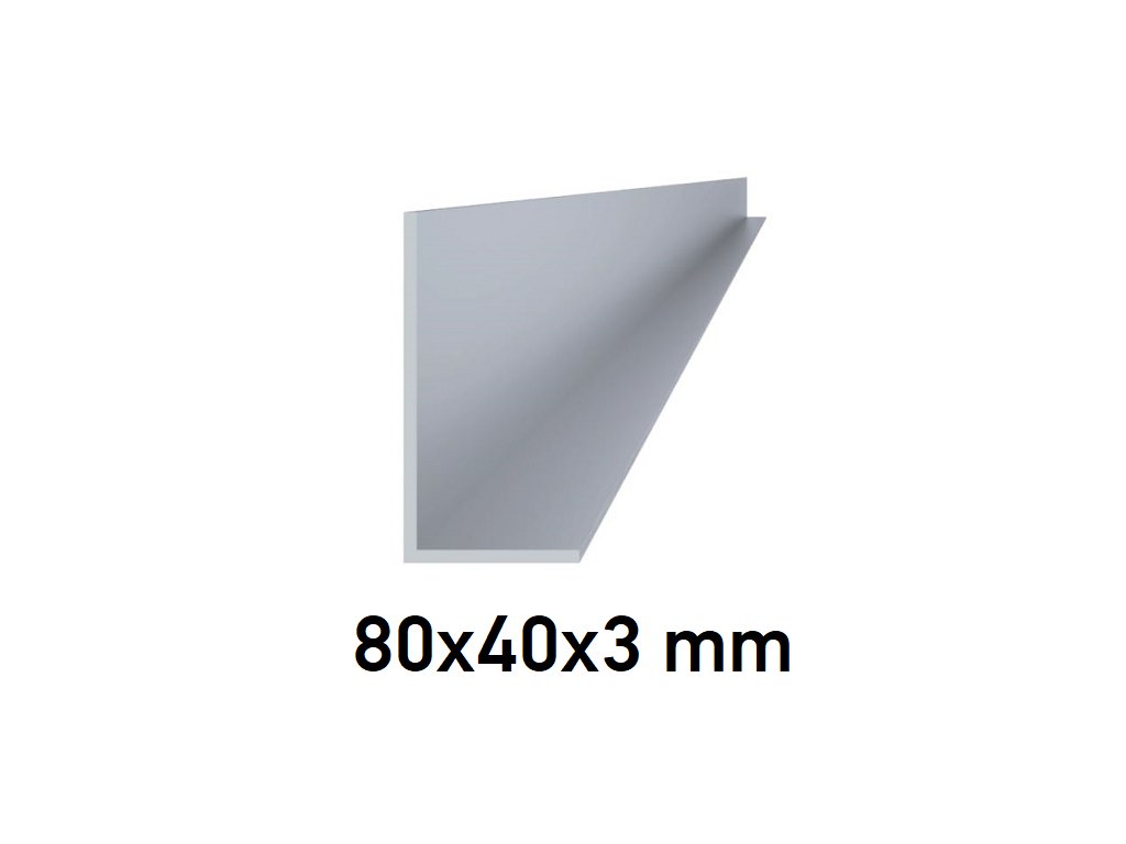 Obdélníkový profil z přírodního hliníku bez povrchové úpravy o rozměrech 80x40 mm a tloušťce 3 mm.