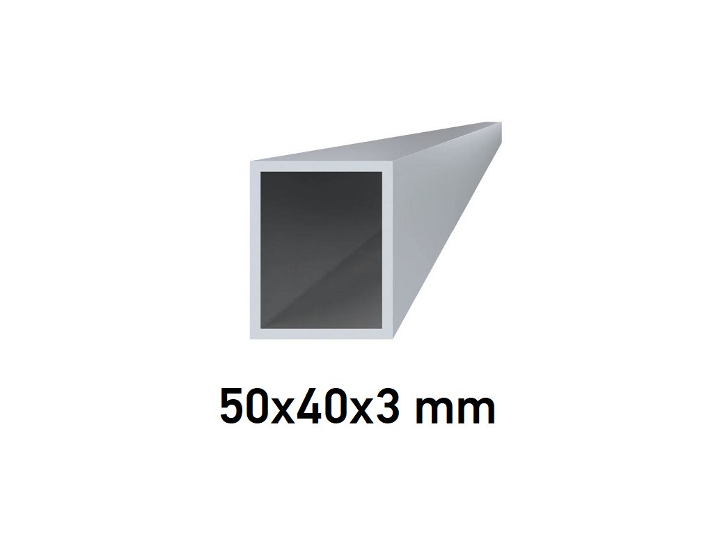 Obdélníkový profil z přírodního hliníku bez povrchové úpravy o rozměrech 50x40 mm a tloušťce 3 mm.
