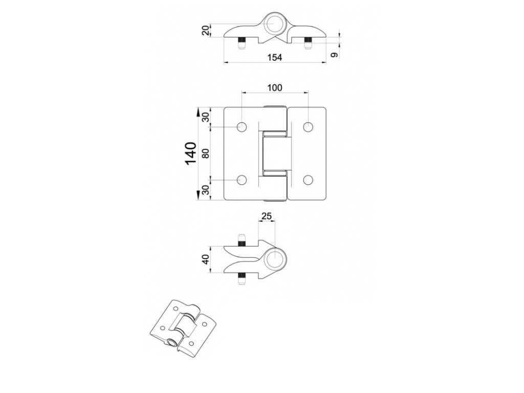 Dvojité závěsy jsou vyrobeny z černě lakovaného hliníku. Závěsy jsou vhodné pro výrobu nadrozměrných skládacích vrat pro hangáry, sklady nebo haly.