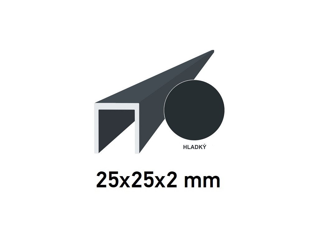 Hliníkový profil ve tvaru U o rozměrech 25x25 mm a tloušťce 2 mm.
