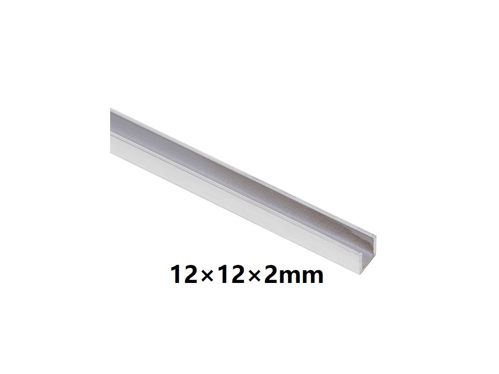 Hliníkový profil ve tvaru U o rozměrech 12x12 mm a tloušťce 2 mm.