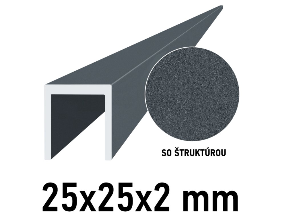 Hliníkový U profil 25x25x2mm, antracit RAL7016 se strukturou 2m +/- 5mm (AL-U-25x25x2-AS-2)