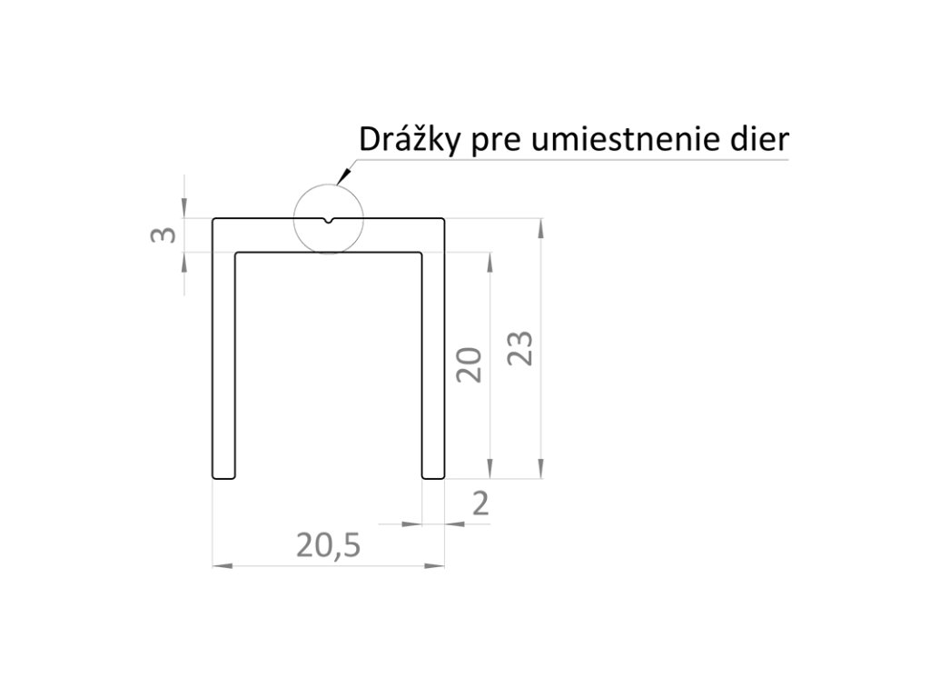 V U-profilu je předvrtaná drážka, do které lze předvrtat otvory pro šrouby. Uvnitř duté lamely jsou po stranách vodicí drážky, do kterých se upevňuje šroub.