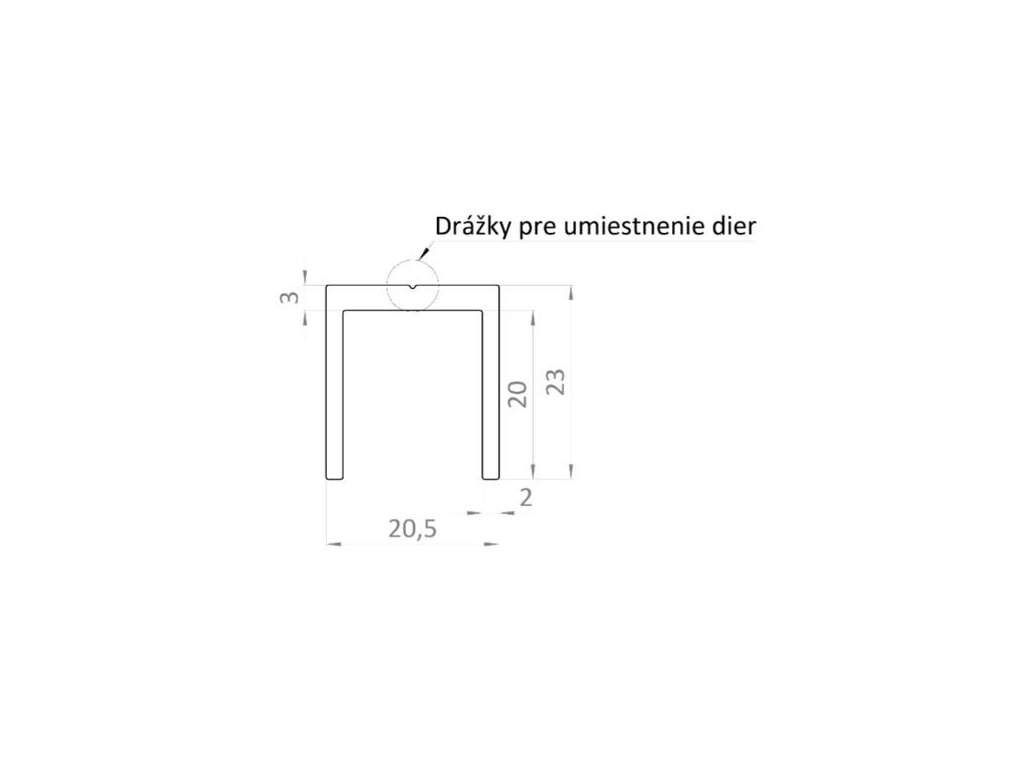 Hliníkový upevňovací profil pro lamely, tvar U, šířka 20,5 mm, povrchová úprava dřeva se strukturou 2m +/- 5mm (AL-UP1-DS-2)
