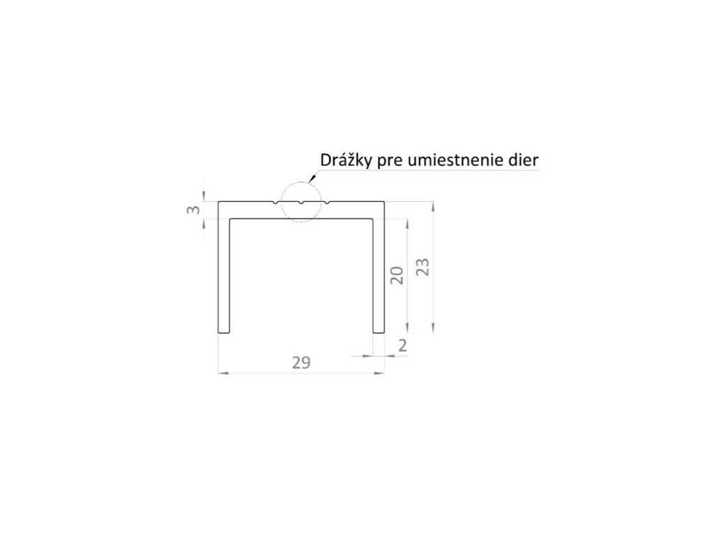 Hliníkový uchytávací profil pro lamely, tvar U, šířka 29 mm 3m +/- 5mm (AL-UP2-3)