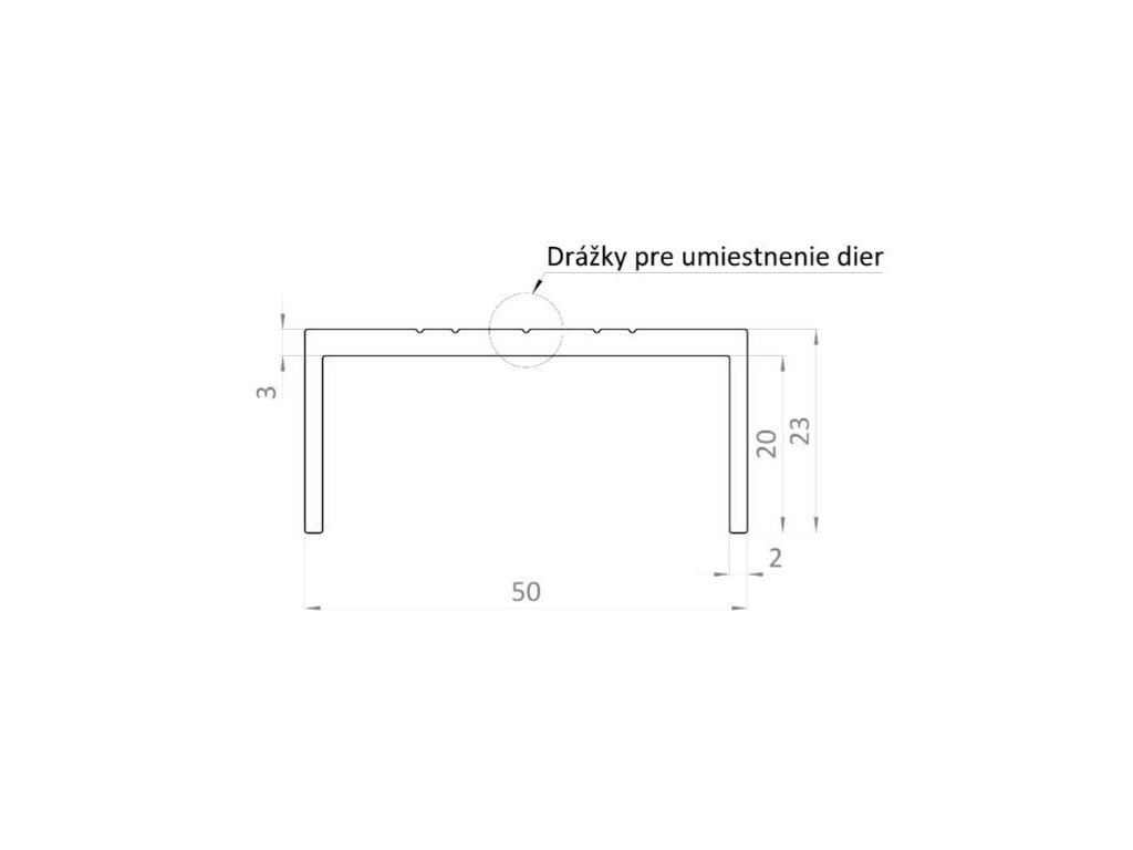 Hliníkový uchytávací profil pro lamely, tvar U, šířka 50 mm, šedá RAL9007 2m +/- 5mm (AL-UP3-S-2)