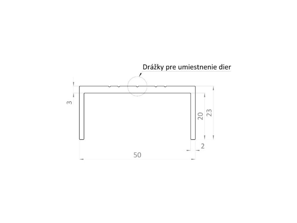 Hliníkový uchytávací profil pro lamely, tvar U, šířka 50 mm 6m +/- 5mm (AL-UP3-6)