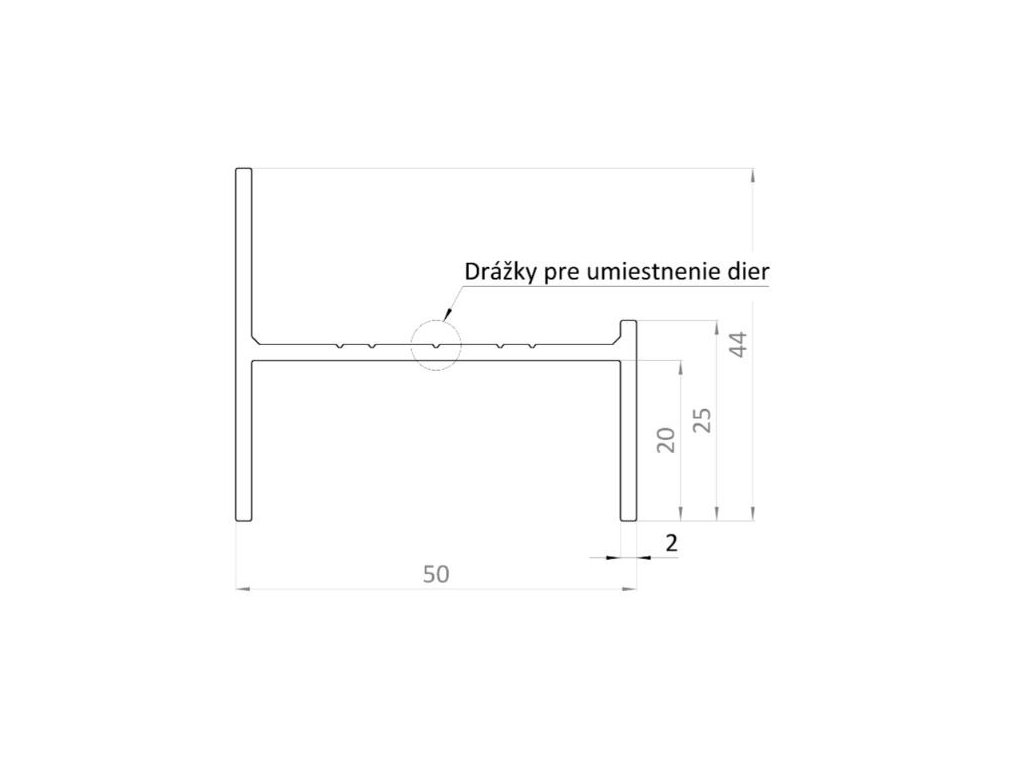 Hliníkový UT profil 50 mm × 44 mm