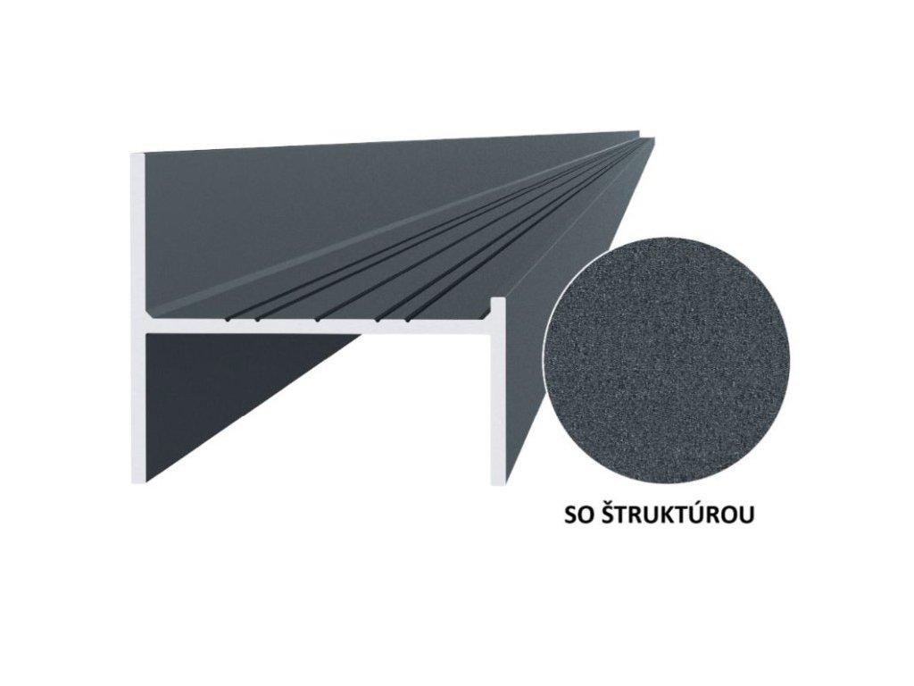 - hliníková kosočtvercová lamela v antracitové barvě, se strukturovaným povrchem(tj. stejným jako upevňovací profil)