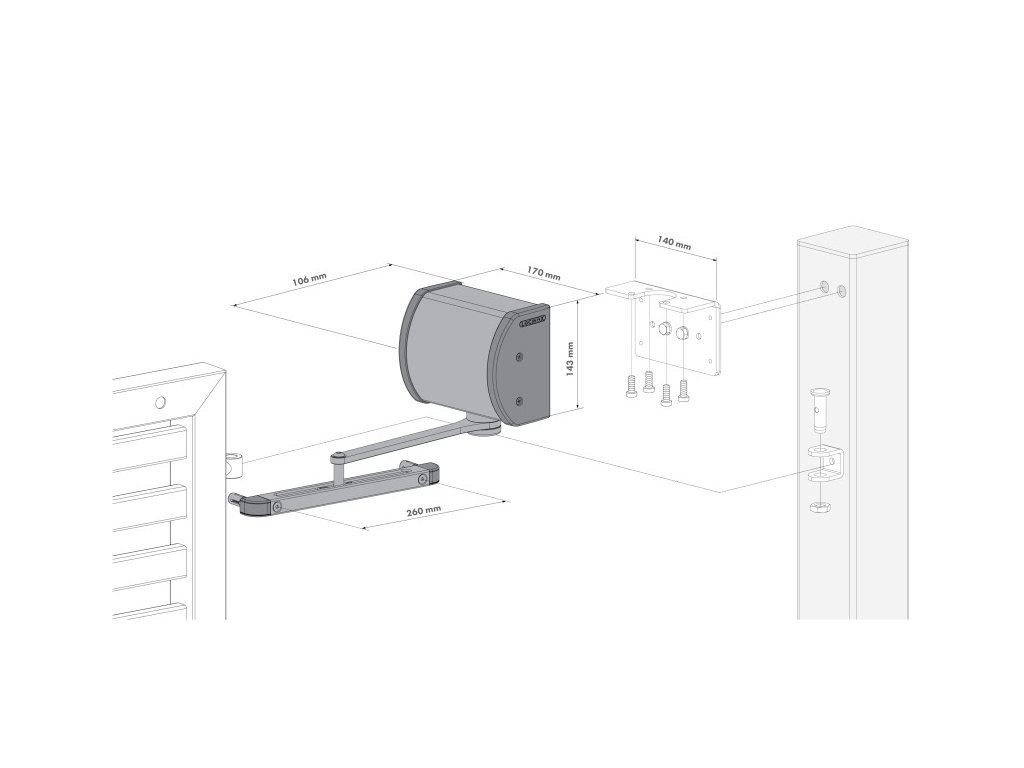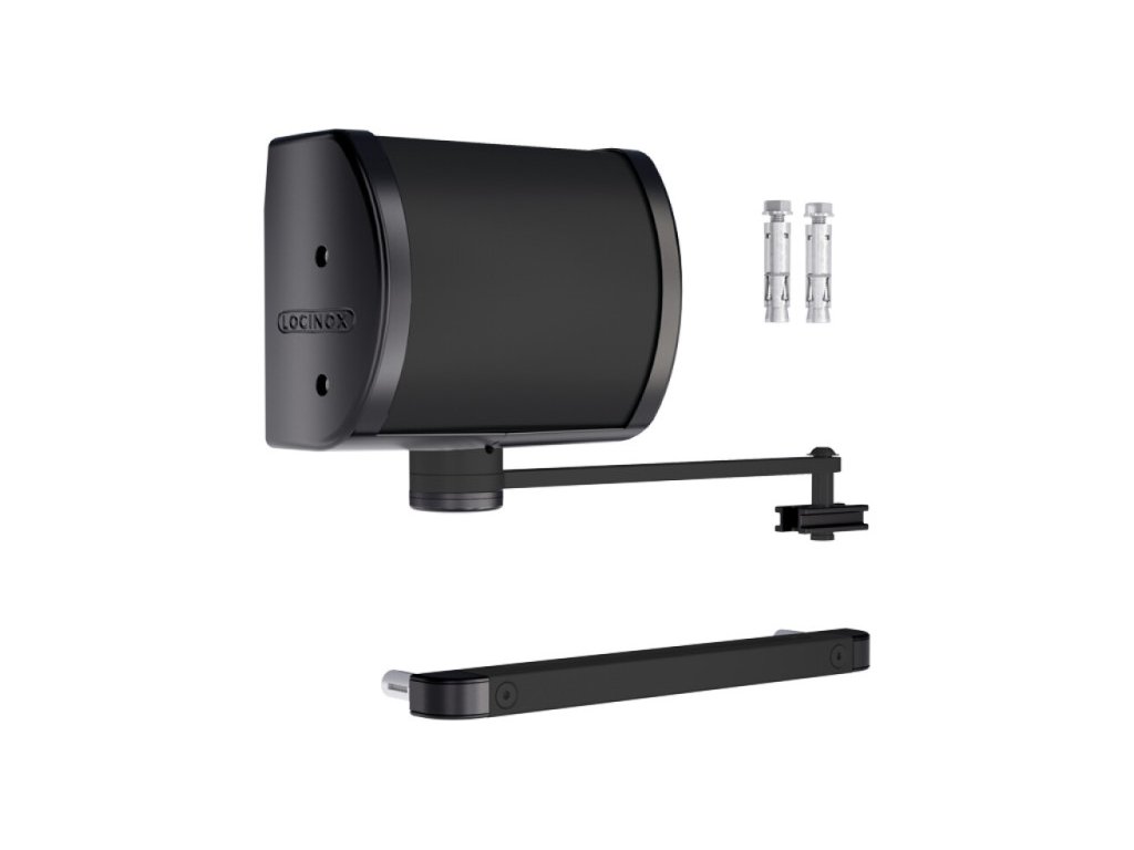 Hydraulický samozavírač Locinox PANTHER, určený k upevnění na zeď, stěnu nebo sloupek, s posuvnou tyčí pro křídlové brány do 150 kg. Samočinný uzávěr je určen k instalaci nad branku.