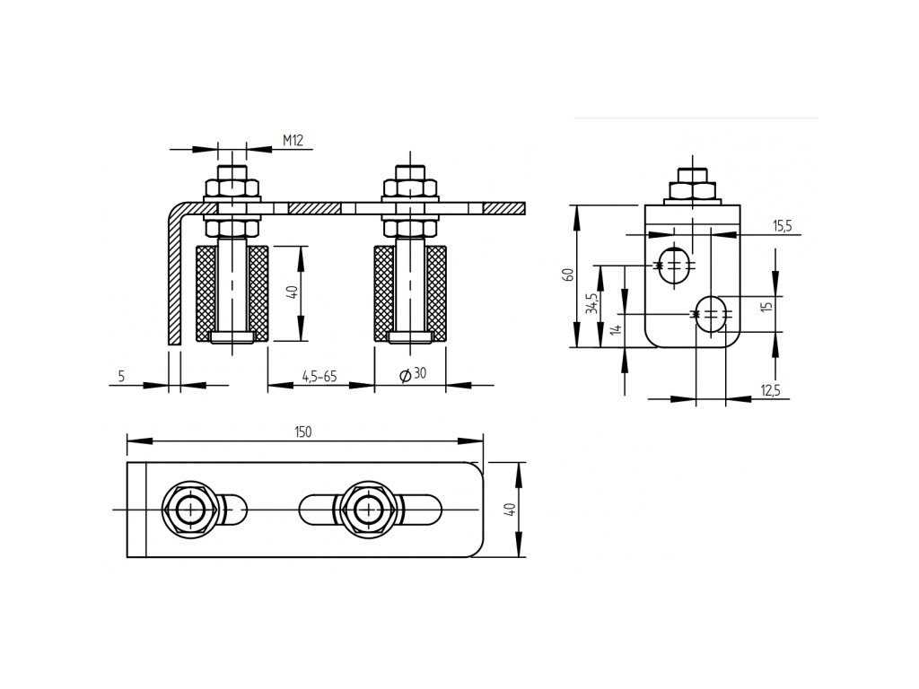 Horní vedení pro posuvné brány se dvěma nastavitelnými válečky. Průměr použitých válců je 30x40 mm a tyto válce jsou nylonové. Tento dvouválcový držák je určen k přivaření nebo přišroubování ke sloupku nebo ke stávajícímu oplocení na vašem pozemku.