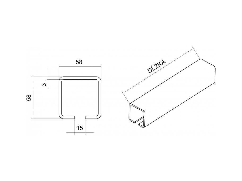 Vodicí C-profil 58x58x3mm pro samonosnou bránu, INOX. Délky: 3, 6 m.