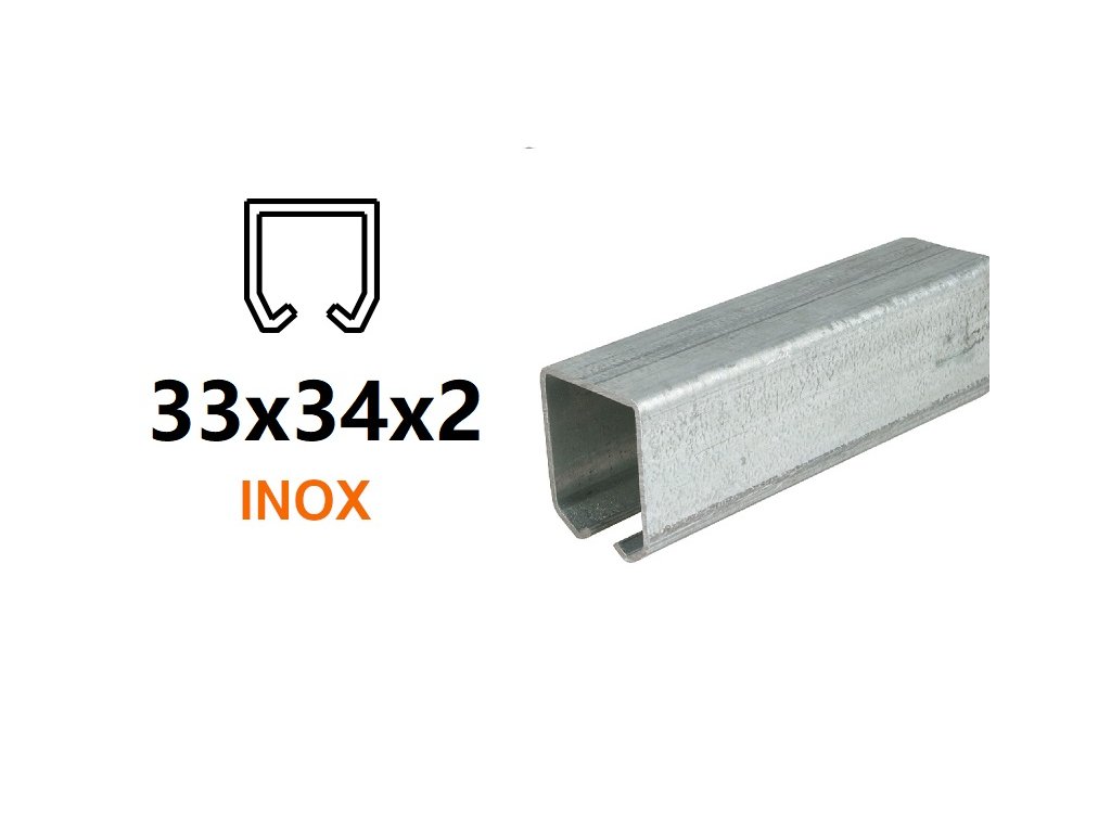 INOX C-profil pro závěsnou bránu 33×34×2mm, 3m, nerezový
