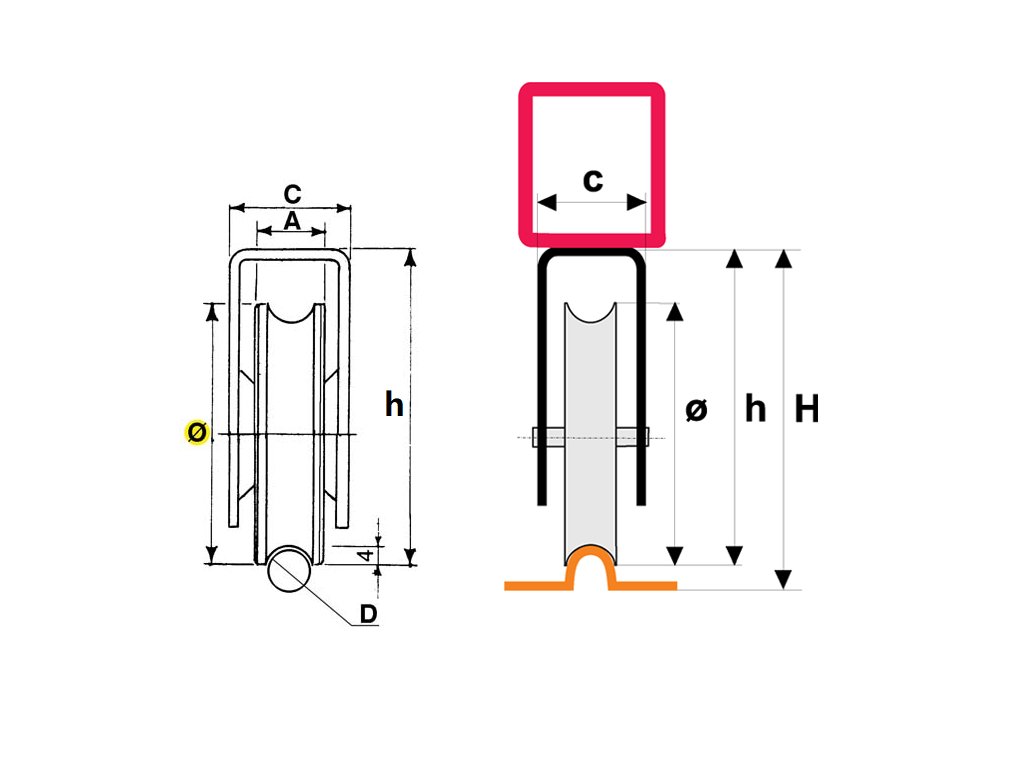 Nerezové kolo pro kolejnici ve tvaru U s vysoce kvalitními ložisky italské výroby od společnosti IBFM. Pro kolejnici Ø20 mm. Nerezová ocel AISI304.