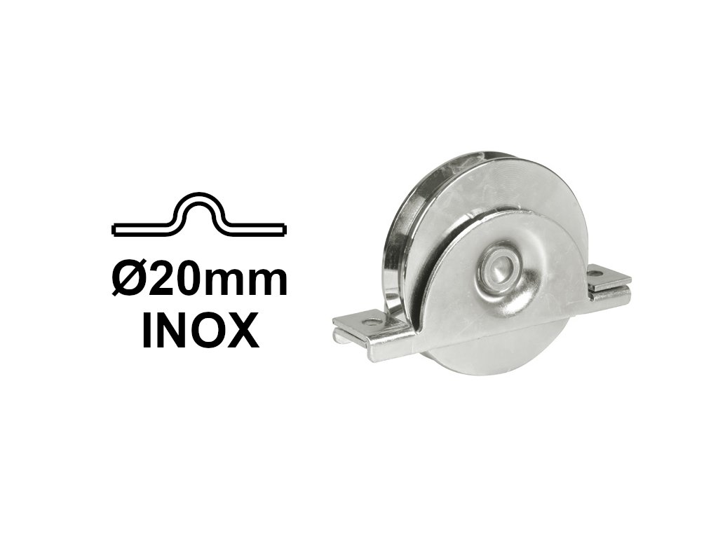IBFM INOX Kolečko kolejových vrat pro kolejnici Ø20 mm pro šroubování zapuštěné tvar U nerezové 100x20, 155 (KLB-KO20-U100-INOX)