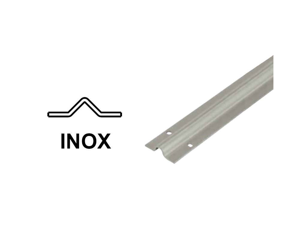 Antikorozní lišta z nerezové oceli AISI 304 pro posuvnou bránu, tvar V (výřez 90°), s montážními otvory, nerezová ocel.