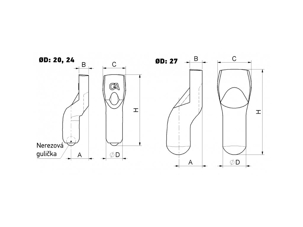 Pro svařování. Spodní závěs. Kulička z nerezové oceli.