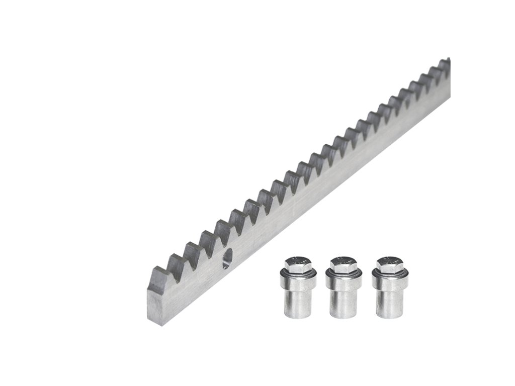 Hřeben s pastorkem se dodává včetně 3 ks svařovacích matic pro upevnění a 3 ks upevňovacích šroubů. Matice jsou primárně určeny k přivaření k bráně. Segmenty jsou vzájemně kompatibilní a lze je snadno propojit. Na 1 m hřebene připadají 3 nástavce.