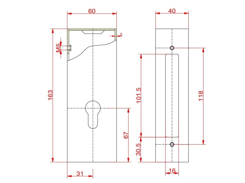 Nelakovaná ocelová kazeta s hákovým zámkem ZH. Velikost kazety je 170x60x40 mm a je vhodná pro přivaření k rámu brány. Kazeta nemá otvor pro rukojeť, zamykání pomocí klasické fabky (kazeta se dodává bez fabky). Kazetu lze přivařit např. na profil 60x40 vajec.