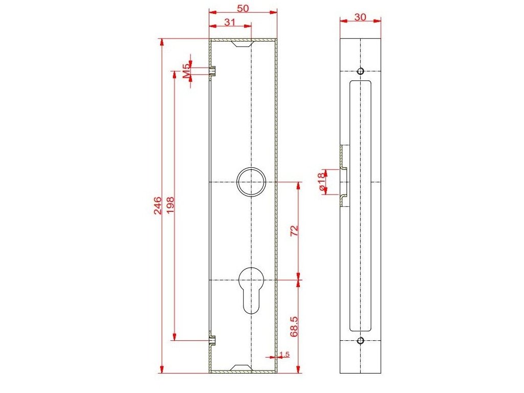 Kazeta se zámkem, rozměr 245x50x30mm, pro profil 50x30 jokl.