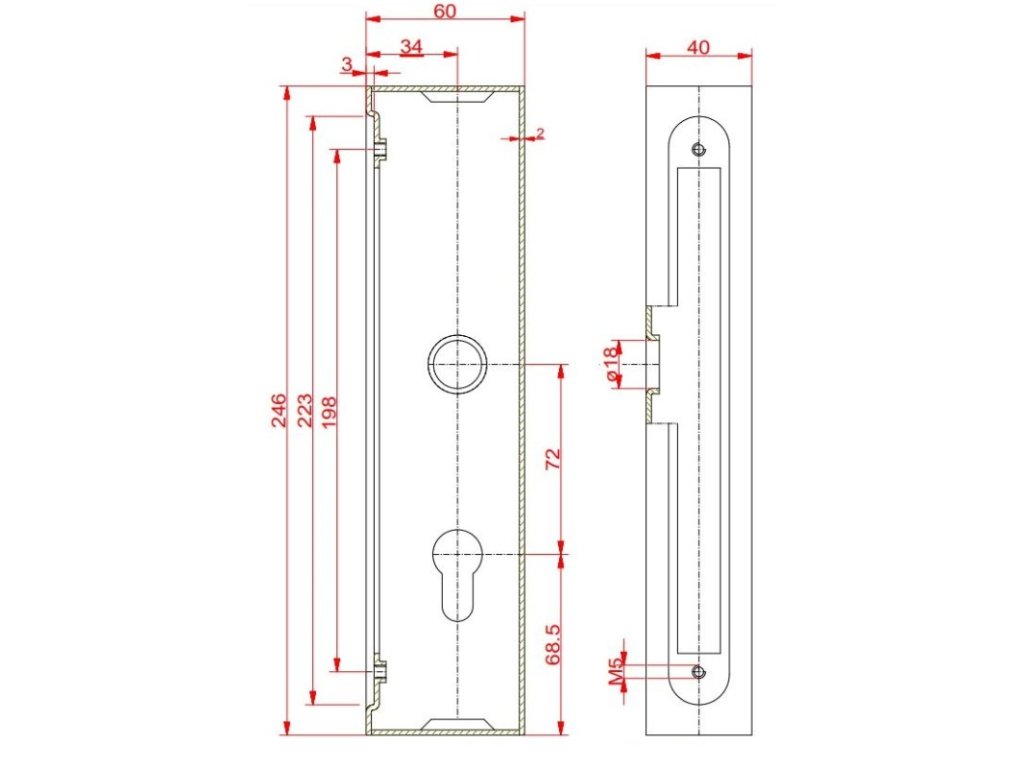 Kazeta se zámkem, rozměr 245x60x40mm, pro profil jokl 60x40.