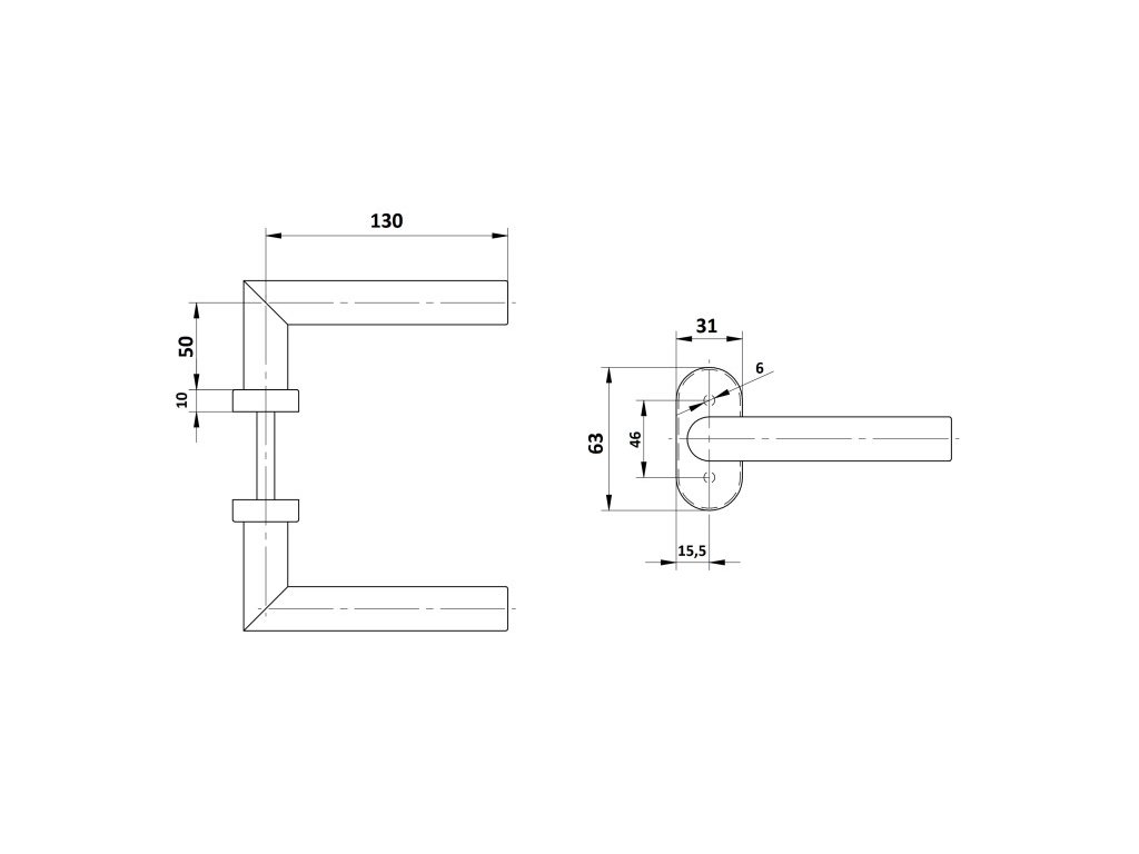 Nerezová ocel AISI304. Broušení K320. Rovná ostrá klika. Oválná rozeta. Univerzální