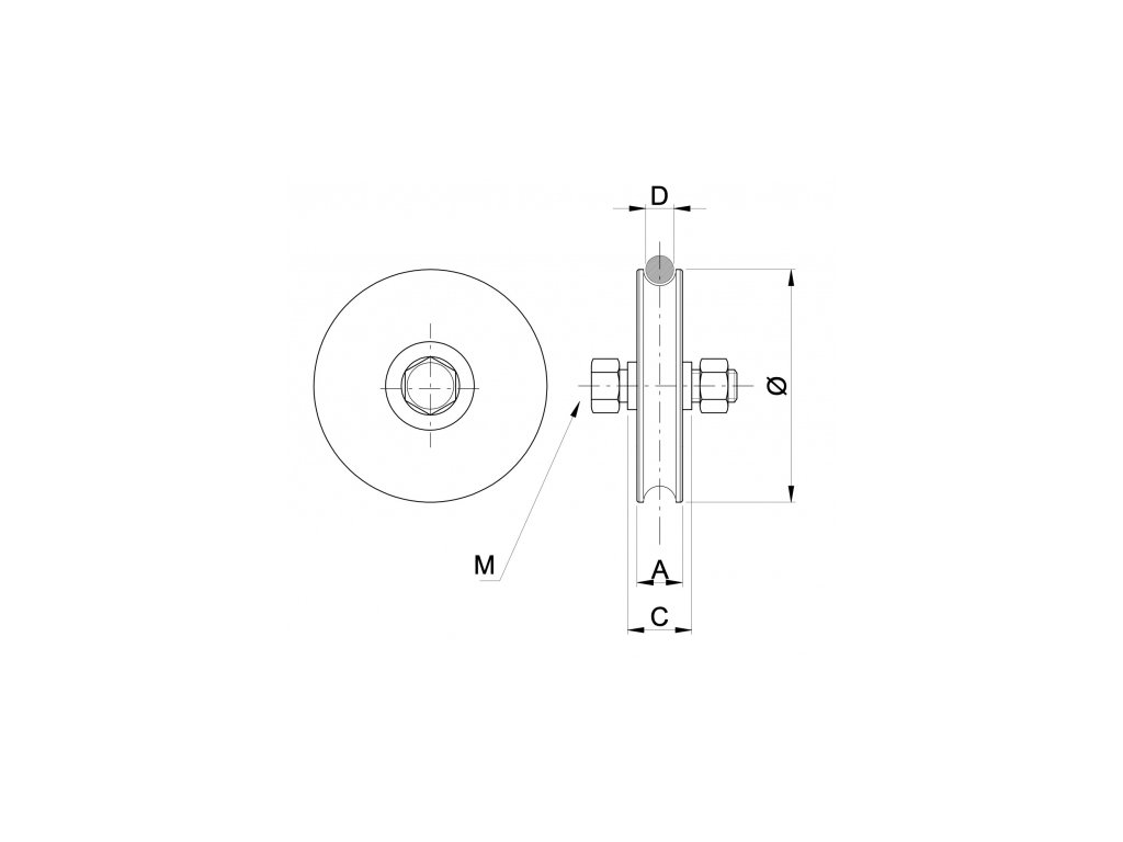 Kolo se dodává s čepem, dvěma pojistnými kroužky a maticí.