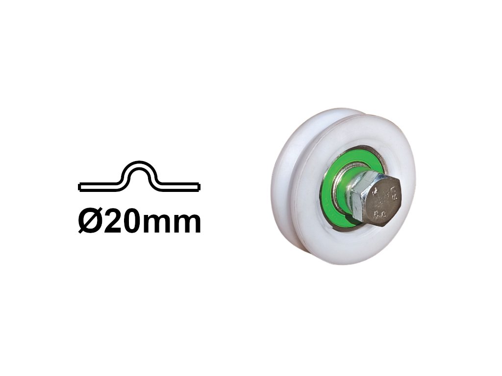 Kolečko kolejnicového hradla IBFM, samostatné, nylonové, pro kolejnici tvaru U Ø20