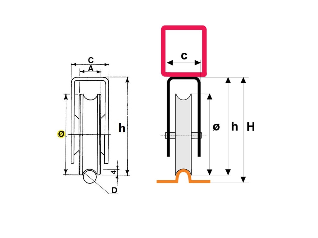 Pozinkované kolo se šroubovým držákem, pro kolejnici ve tvaru U, s vysoce kvalitními ložisky italské výroby. Pro kolejnici Ø16 mm.