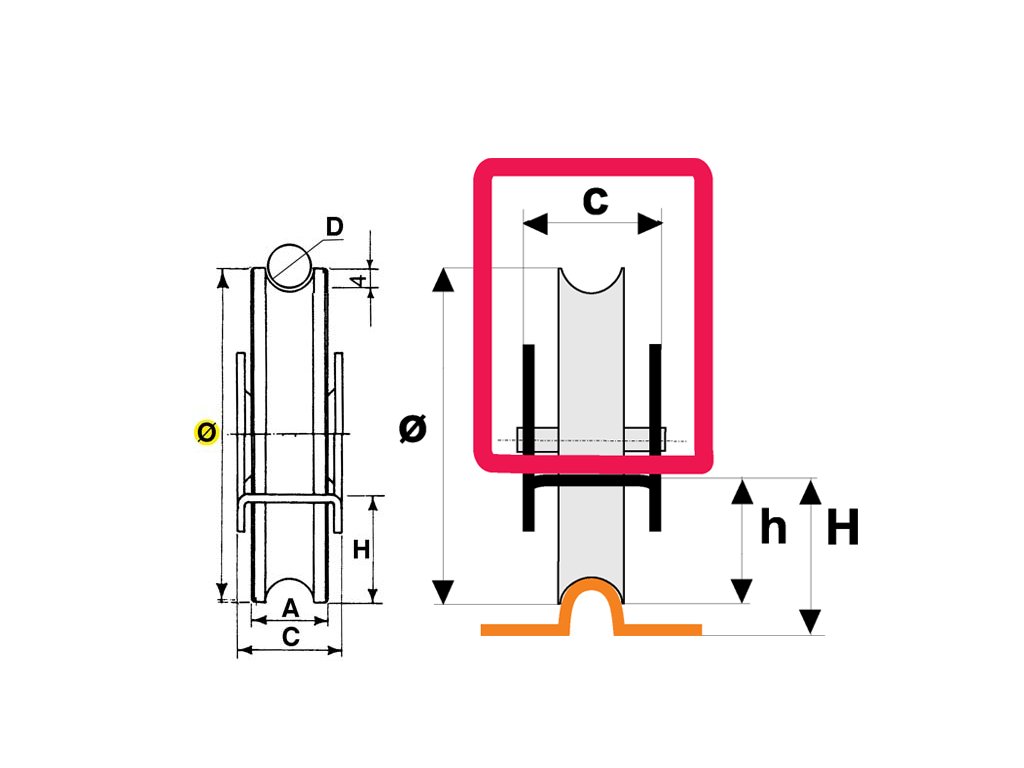 Pozinkované kolo pro kolejnici ve tvaru U s vysoce kvalitními ložisky italské výroby od IBFM. Zapuštěná šroubovaná kolečka se používají kvůli estetice a menšímu odskakování dveří od kolejnice.
