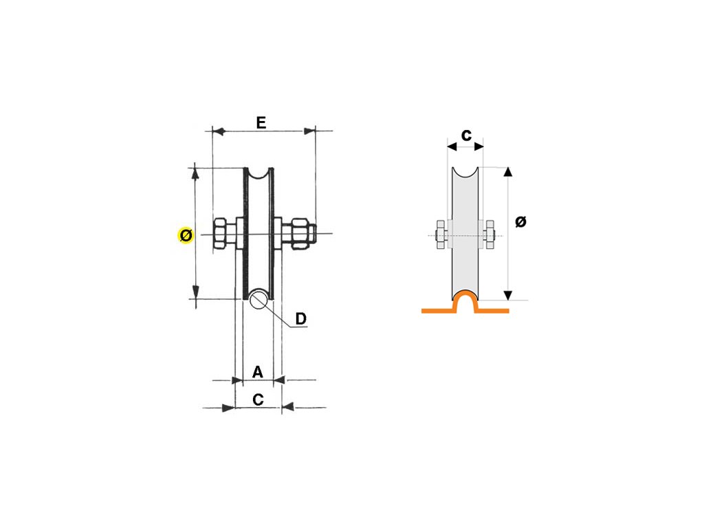 IBFM kolečko kolejových vrat samostatné, pro kolejnici Ø20 tvar U 100 (KLB-KS20-U100)