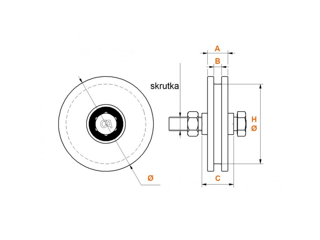 Kolečko kolejových vrat samostatné tvar H 80 (KLB-KS-H080)