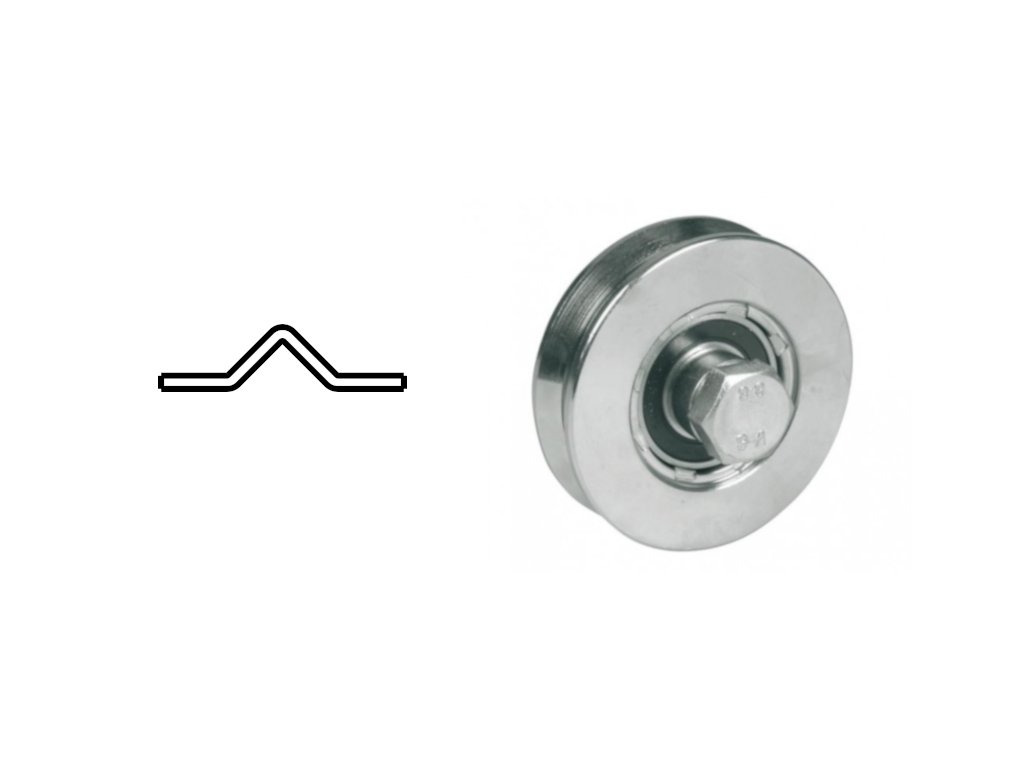 Pozinkované kolo s V-kolejnicí a vysoce kvalitními ložisky italské výroby od společnosti IBFM. Kola s V-řezem lze použít pro kolejnice ve tvaru V nebo na všechny profily L / třmeny s pravým úhlem (90°).