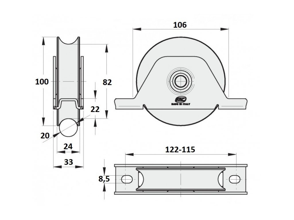 Kolečko pro teleskopickou kolejovou bránu, Ø100 mm