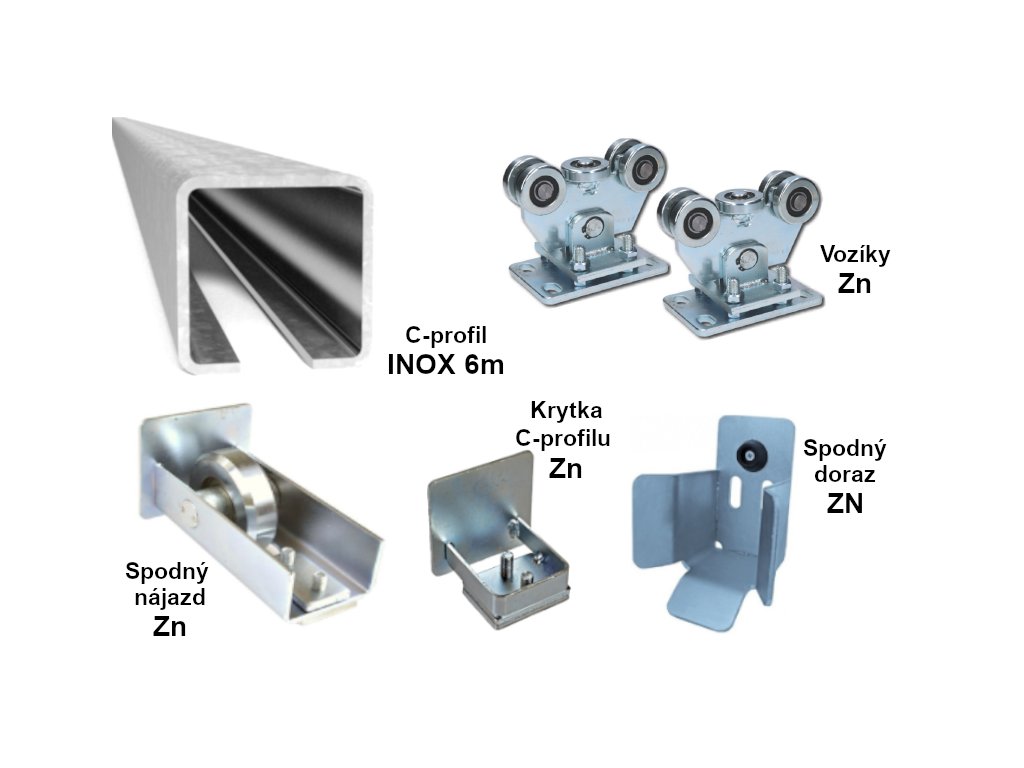 Sada pro samonosnou posuvnou bránu do 4,5 m, INOX/ZN 58x58x3