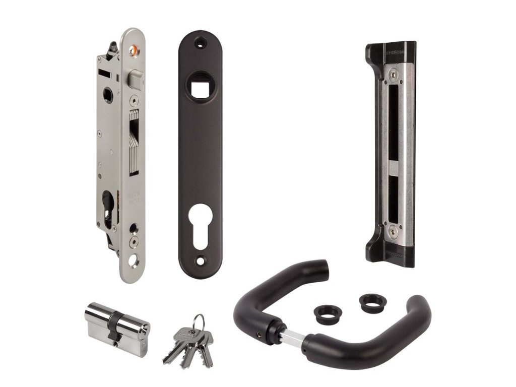 Zámek FORTYLOCK, klika, zarážka, štítek na kliku a vložku, klíč + 3 klíče