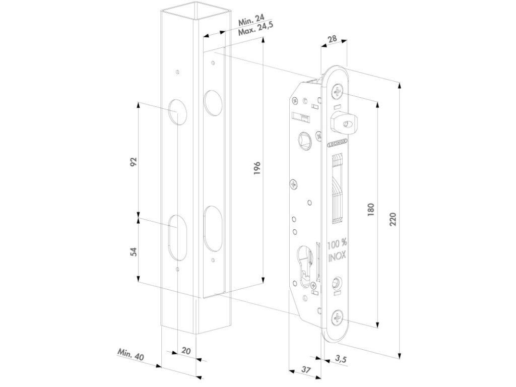 Locinox FORTYSET je vhodný pro použití na levé i pravé straně branky.