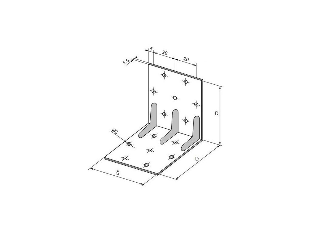 Úhelník se používá ke spojování prvků dřevěných tesařských a jiných konstrukcí. Jako spojovací materiál se používajíkroužkové (vypouklé) hřebíky o průměru 4 mm.