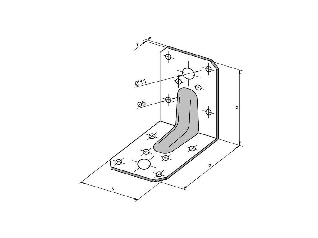 Úhelník se používá ke spojování prvků dřevěných tesařských a jiných konstrukcí. Jako spojovací materiál se používají kroužkové (vypouklé) hřebíky o průměru 4 mm.