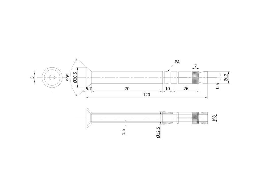 Nerezová kotva pro hliníkové profily.