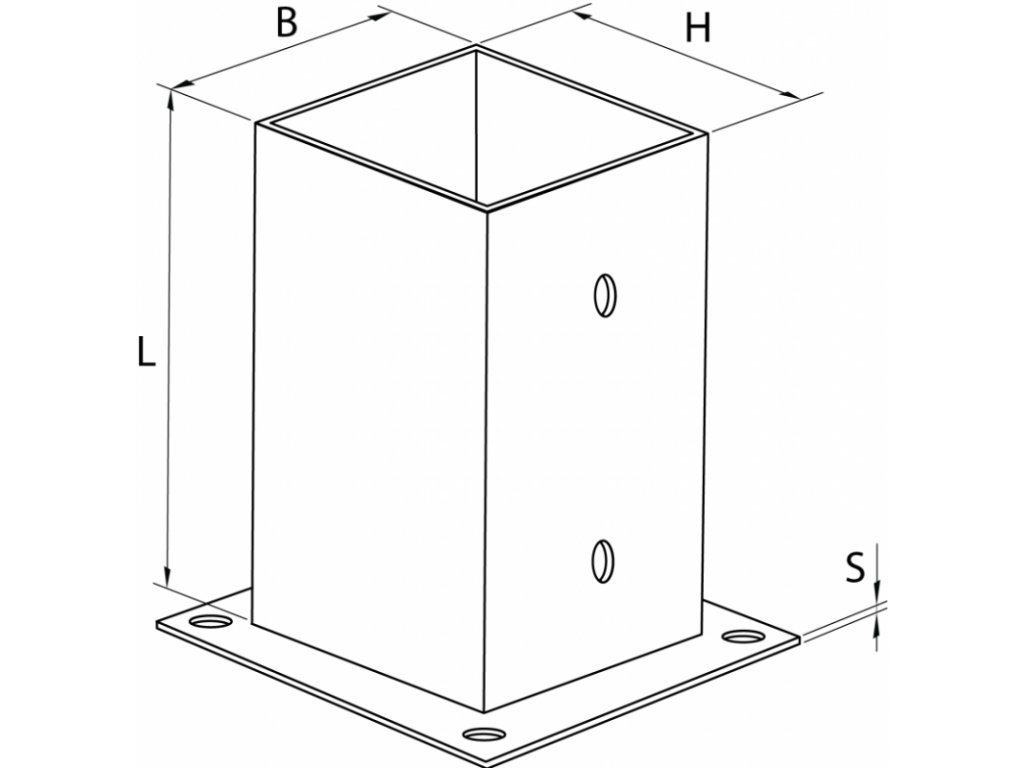 Statická svařovaná kotevní patka sloupu se používá k ukotvení lisovaných dřevěných sloupů nebo nosníků k podkladu pomocí ocelových hmoždinek nebo vrutů.