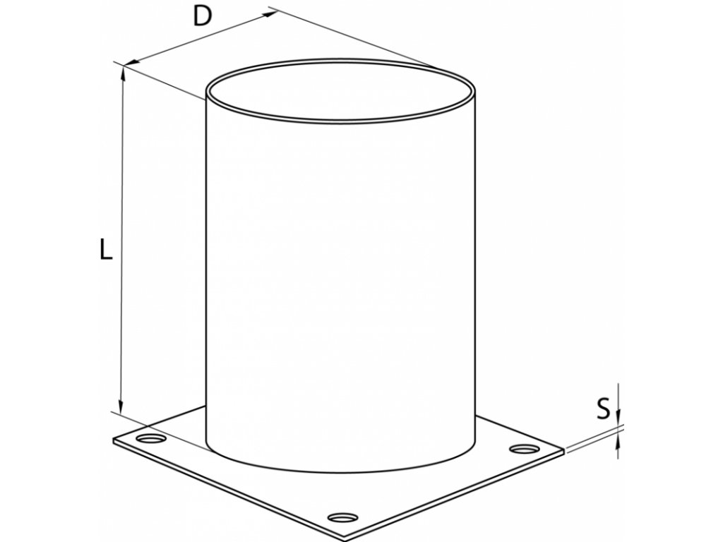 Statická svařovaná kotevní patka sloupu se používá k ukotvení lisovaných dřevěných kůlů nebo kulatých sloupů k podkladu pomocí ocelových hmoždinek nebo šroubů.