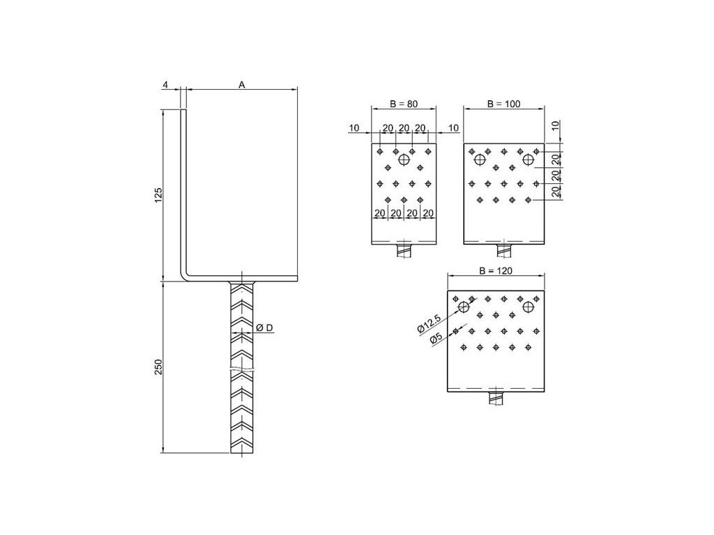 Fotogalerie kotevní patky ve tvaru L s roxorem