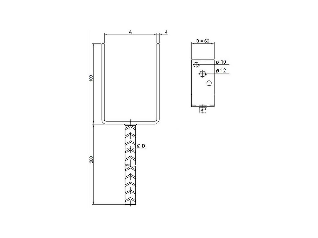 Technické vlastnosti kotevní patky ve tvaru U 60 mm s roxorem