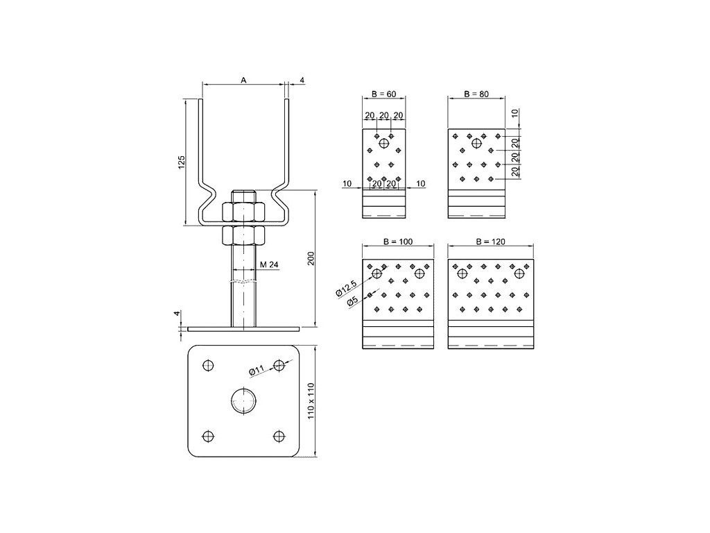 Ukázka použití kotevní patky ve tvaru U se šroubovou základnou
