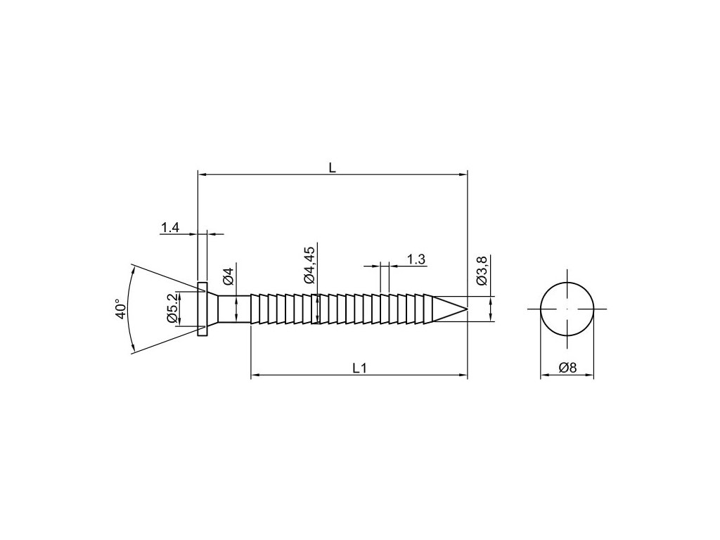 Průměr 4 mm. Délky 40, 50, 60, 70, 80, 90 mm. Pozinkované.