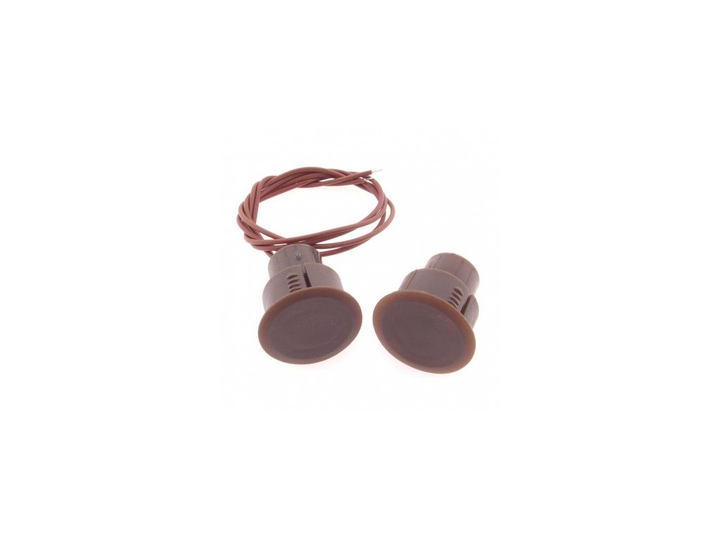 Magnetický spínač (kontakt), válcový, určený k zapuštění např. do rámu dveří.