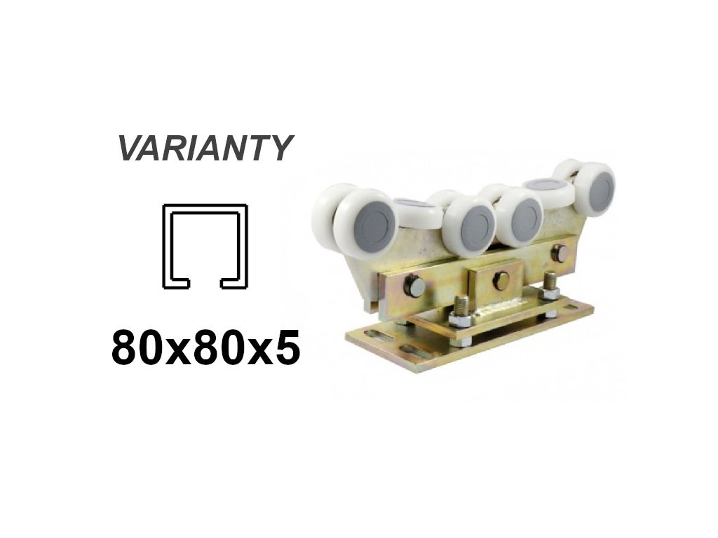 Přejezd až 10 m. S regulací. Kolísavý. Nylonová kolečka. Pozinkované. Profil C 80.