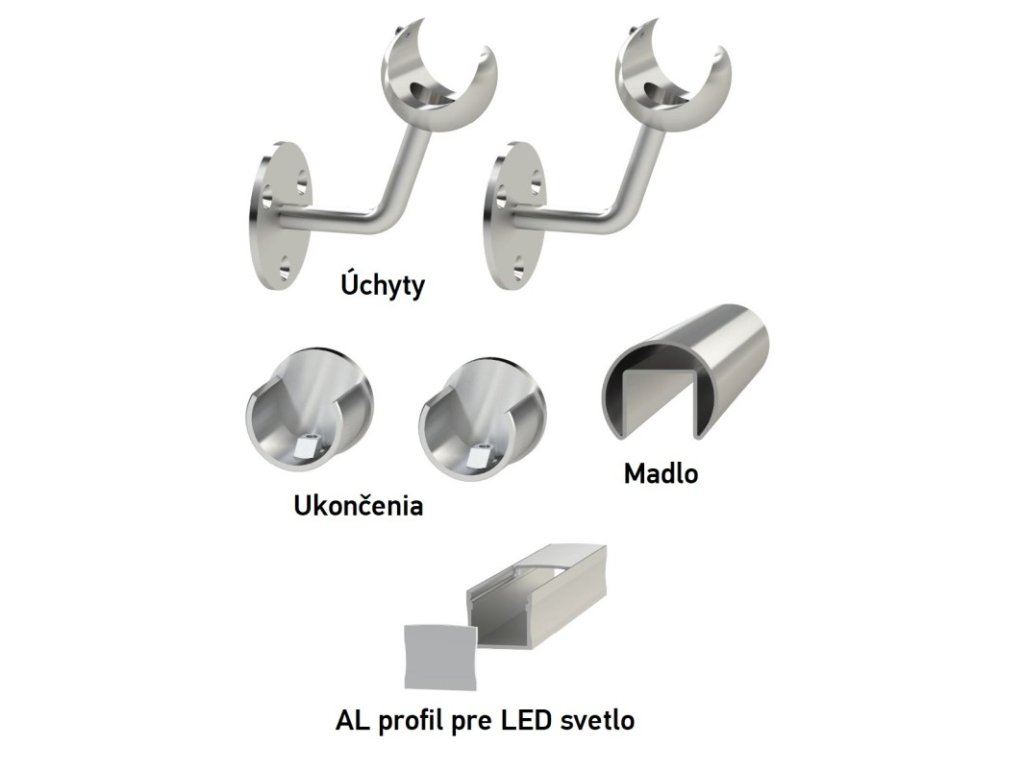 Sestava madla: | 3x rukojeť, rukojeť ø 42,4 mm s koncovkami, hliníkový profil pro LED pásek |