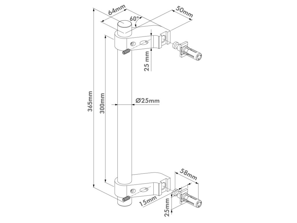 Locinox hliníkové madlo ø25mm s 60° úchytem, BAR-A-300-60-365-9005 (LCX-BAR-A-300-60-365-9005)